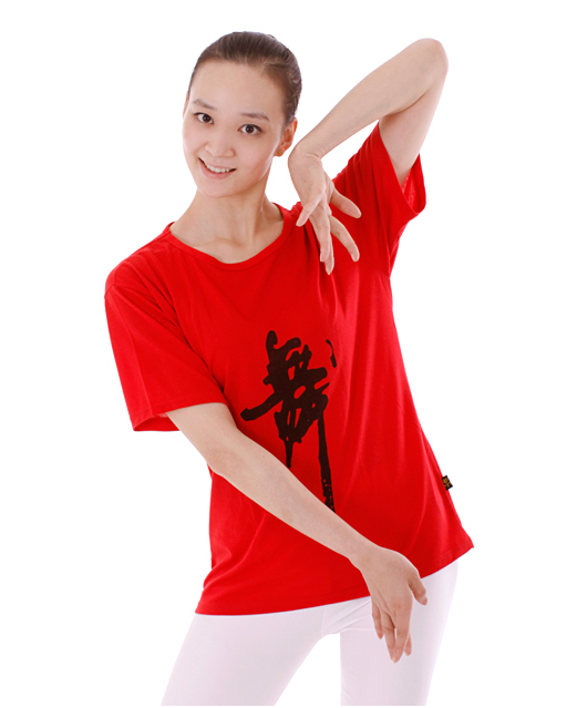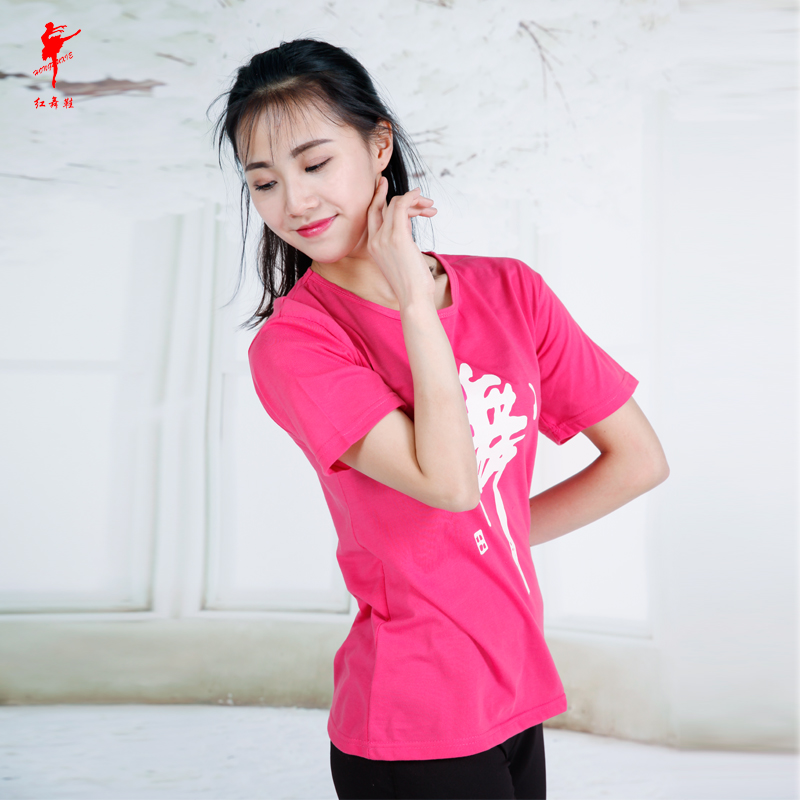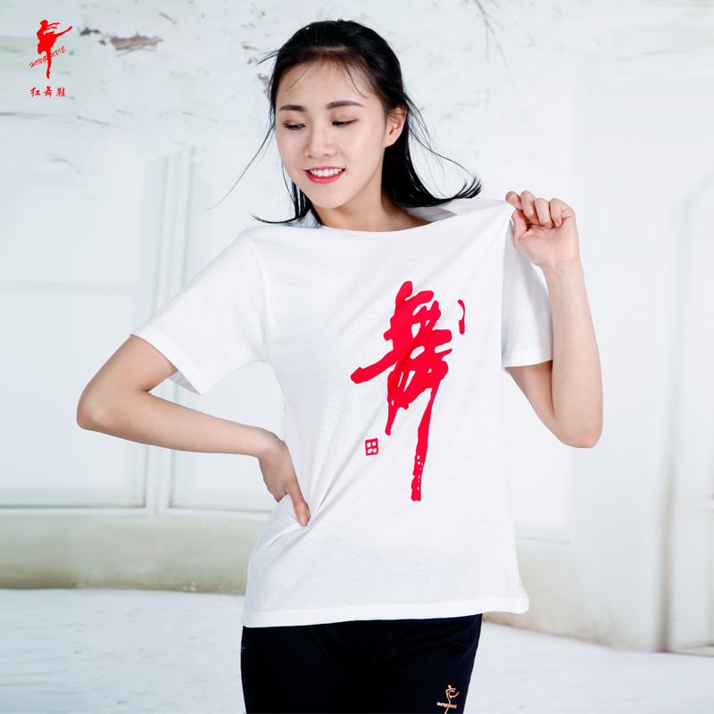 Red dance shoes dance clothing adult half-sleeved cultural shirt top women's short-sleeved practice clothing dance word clothes with dance word t-shirt