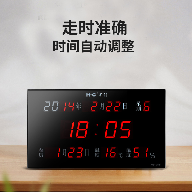 Hongchuang perpetual calendar electronic clock led luminous living room wall clock Calendar watch silent luminous home multi-function
