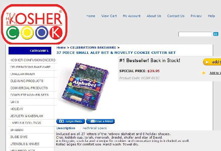 Children's gift $30 Hebrew alphabet US KOSHER cookie mold set