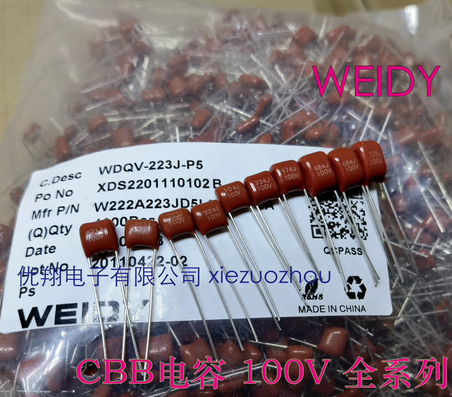 WEIDY film CBB capacitor 102 222 222 332 392 472 682 822J 5%(100)