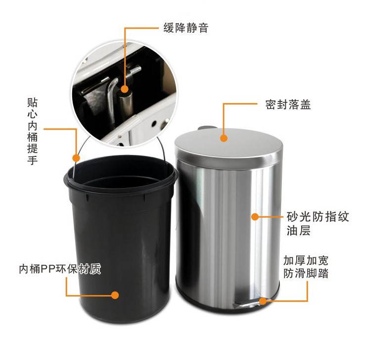 Eurostyle Stainless Steel Trash Can Creative Fashion Home Kitchen Make-up Room Pedal bin with inner barrel