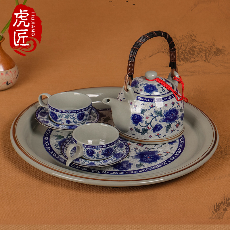 Tiger artisan ceramic tea cup retro green flower porcelain with small tea cup small number of tea bowls Tea drinking cup with saucer tea set cup-Taobao