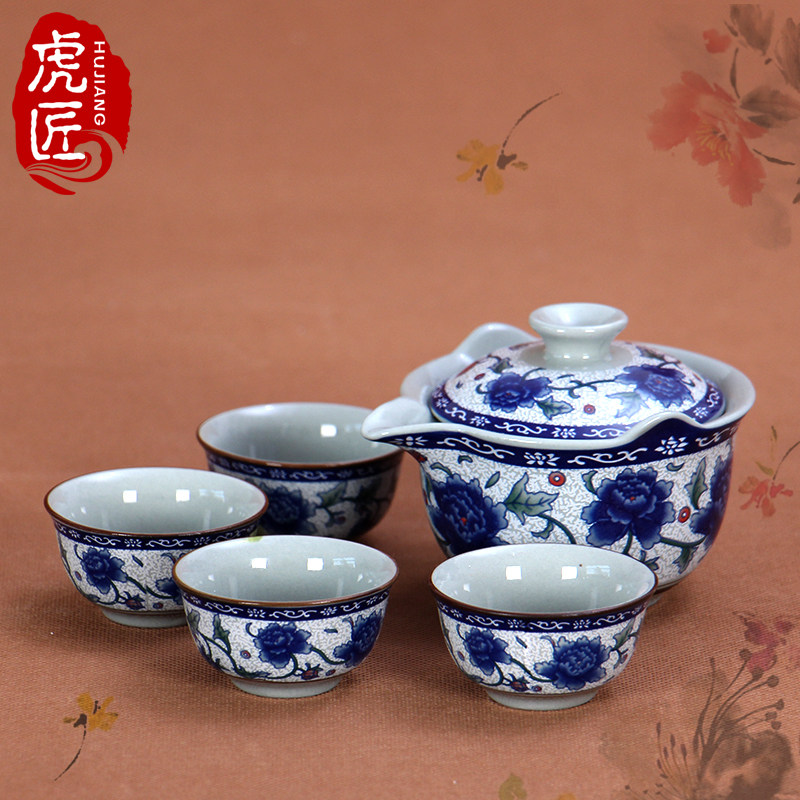 Tiger artisan Jingdezhen Qinghua Porcelain Tea Drinking Cup Ceramic Small Tea Cup Kung Fu Tea Tea Tea Bowl Small Number Tea Bowl-Taobao