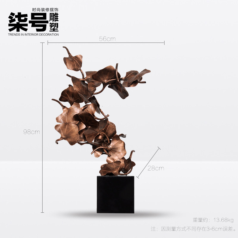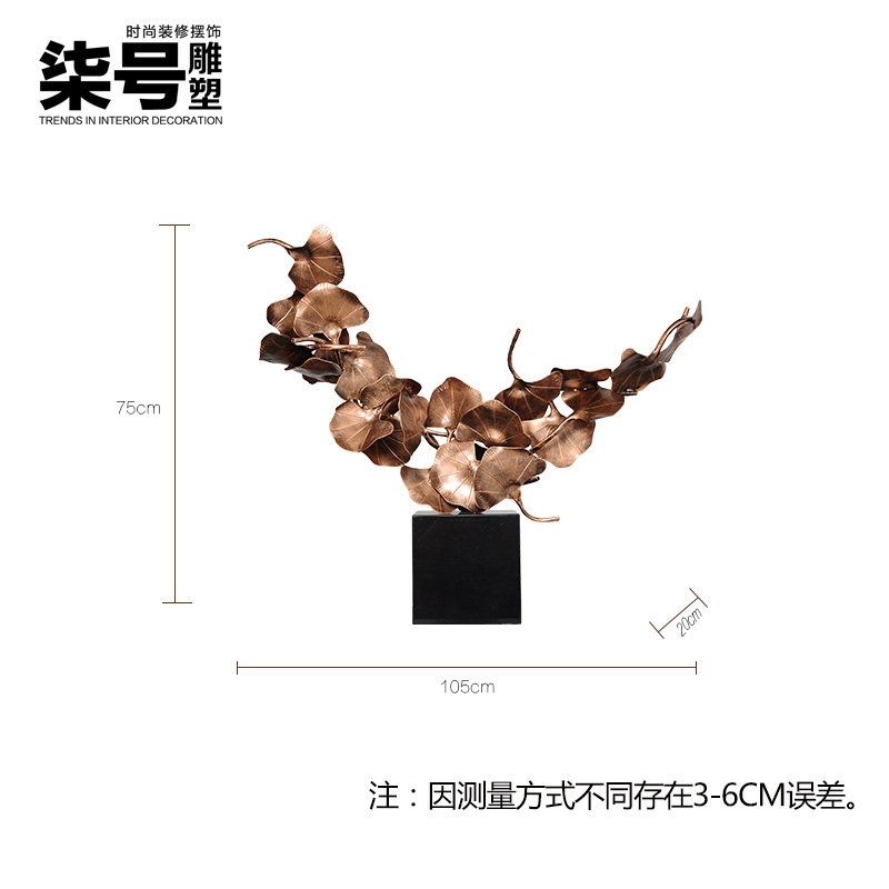 Metal desktop porch decoration hotel living room model room simulation ginkgo leaf iron sculpture soft decoration craft gift decoration