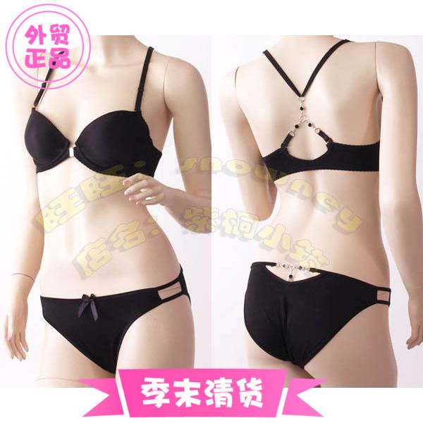 Day Ensemble Black Glossy Cross Cuddling Bag Front Button Beauty Back Teen Girl Sexy Bra Underwear Suit 65CD 70BCD