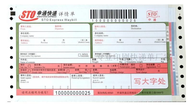 Express manifest printing Custom logistics consignment note printing international face single handwritten waybill printing with hole computer bills