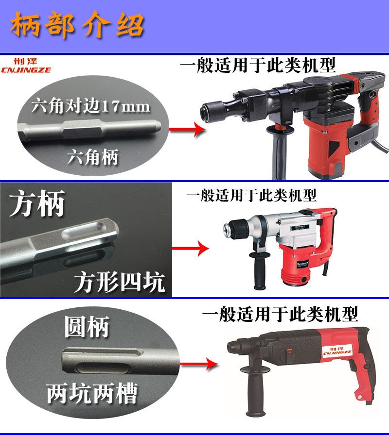 Jing Ze long hexagon extended chisel small electric pick hammer drill bit 0810 electric pick steel shovel chisel tip flat hook chisel