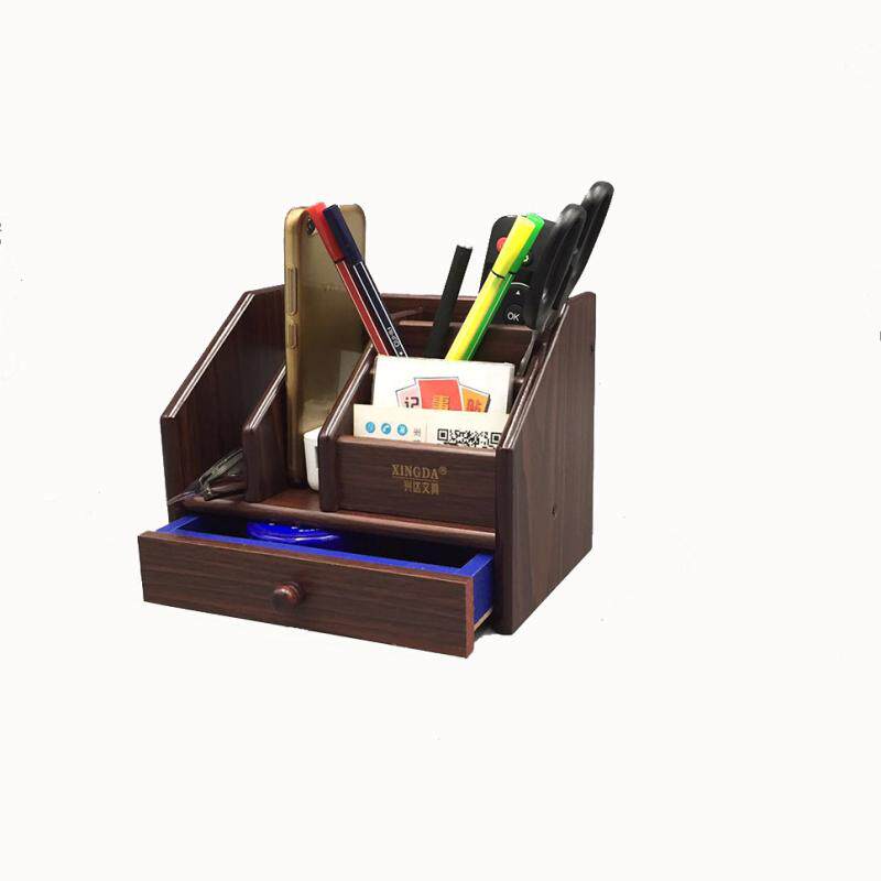 Xinda stationery wooden drawer multifunctional pen holder Office combination storage supplies oblique Pen Holder