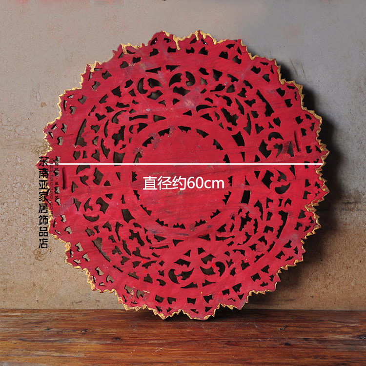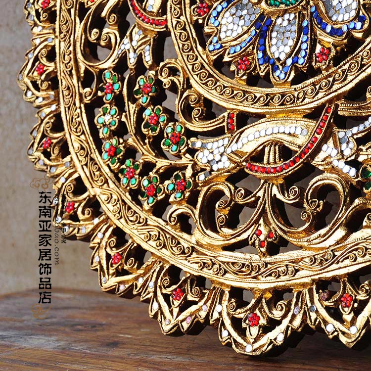 Thai craft gift decoration Southeast Asian style home decoration Thai wood carving solid wood wall hanging creative decoration gold foil round flower