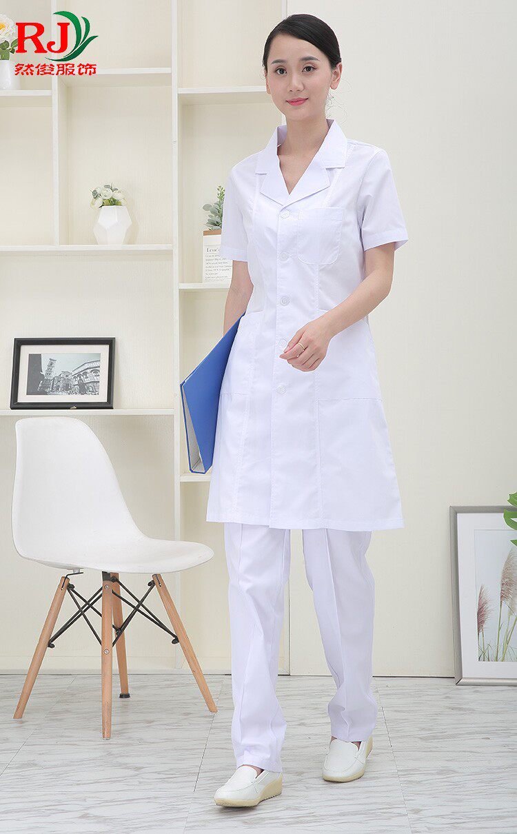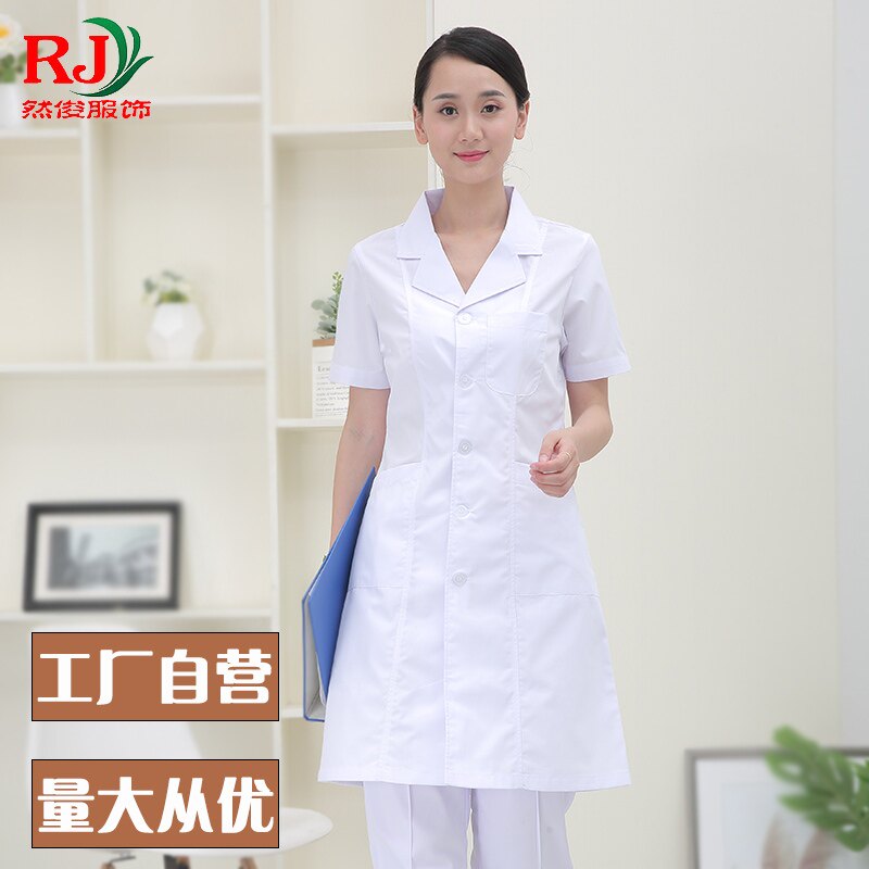 Female doctor clothing summer suit collar nurse white coat short-sleeved pharmacy health school intern medical work clothes slim fit
