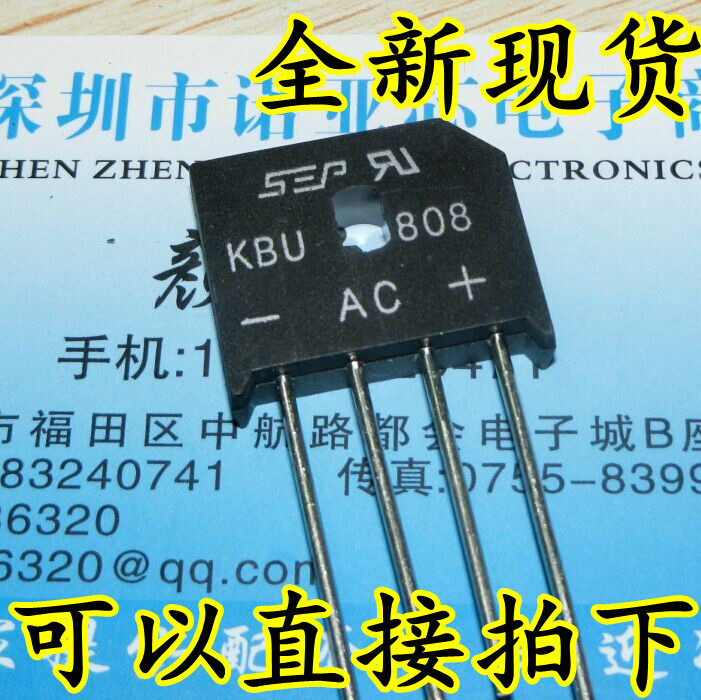New rectified bridge 8A800V flat bridge KBU808 can replace RS808 foot current pressure resistance