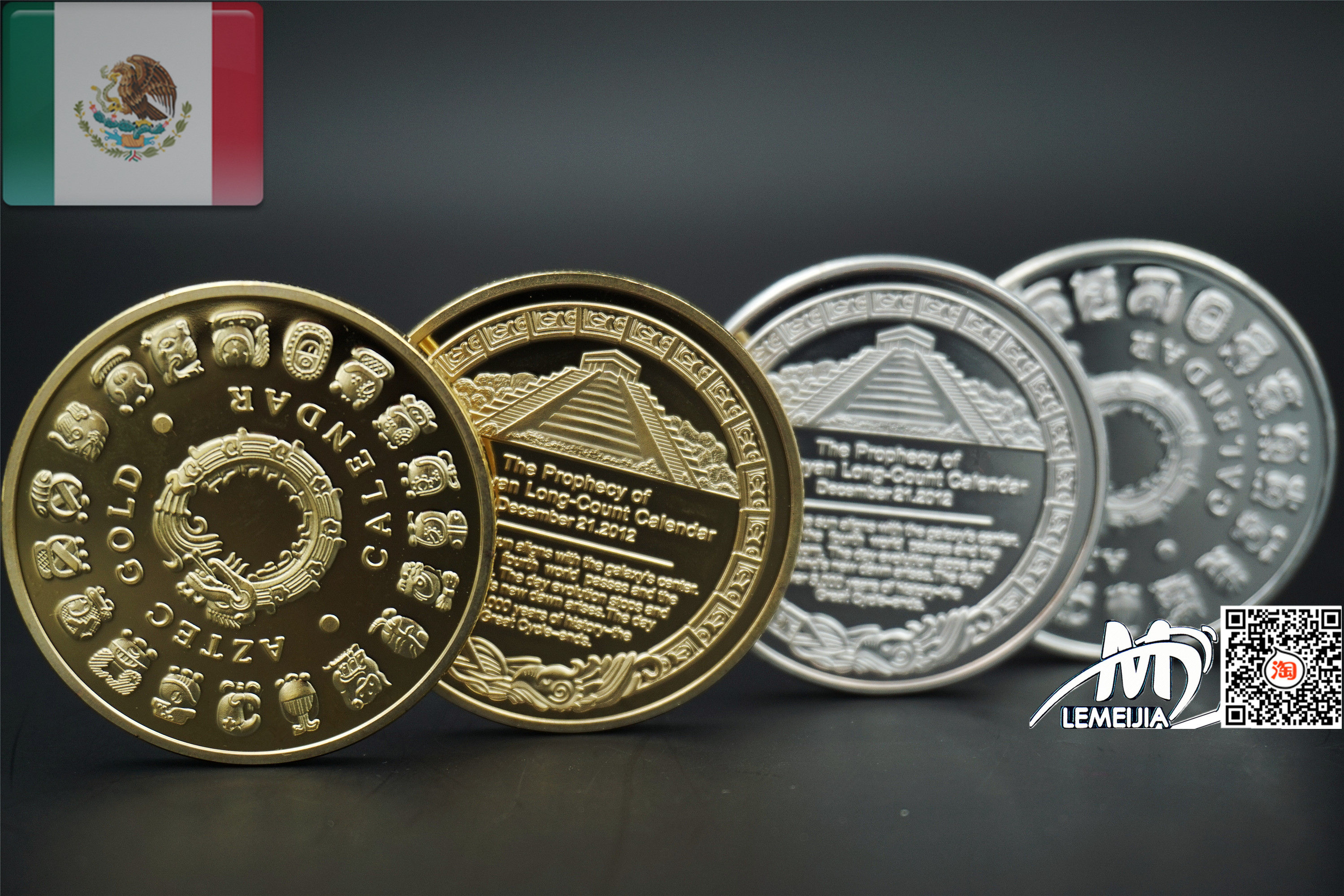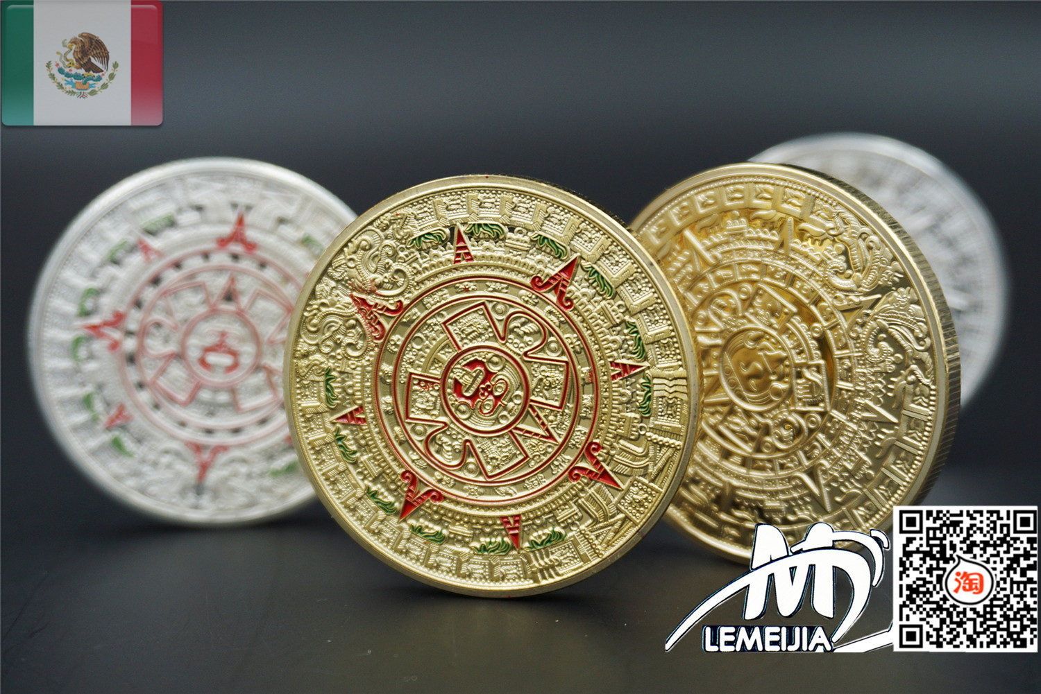 Promotion of four American Mayan commemorative coin sundial Aztec exquisite gold-plated silver-plated commemorative coin set