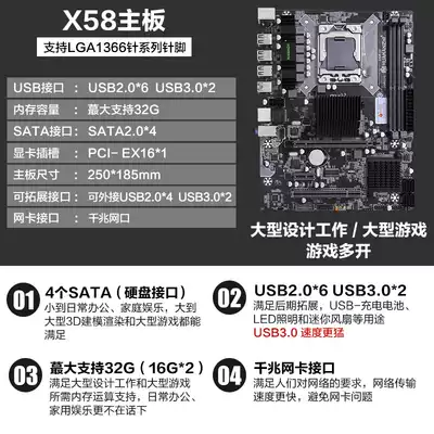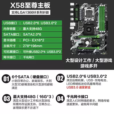 South China x58 x79 motherboard CPU set DDR3 1366-pin motherboard Desktop computer computer chicken eating game x5675