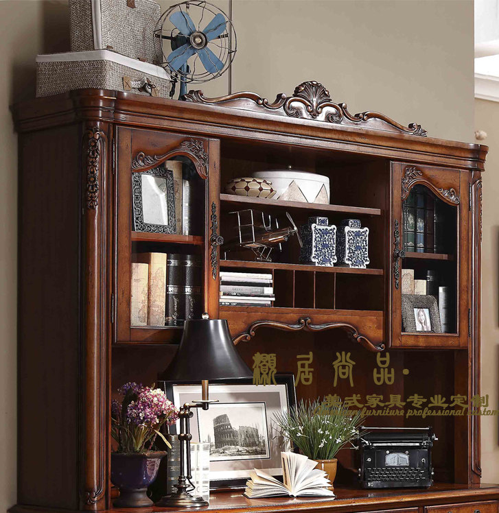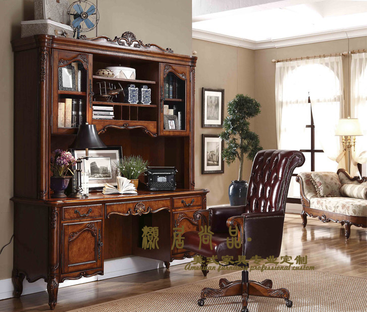 American solid wood computer desk desk integrated desk home retro carved high-end study boss desk desk custom
