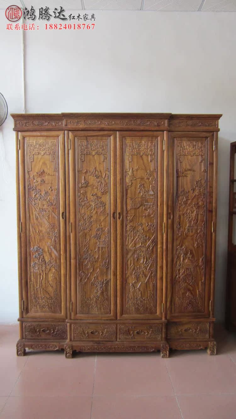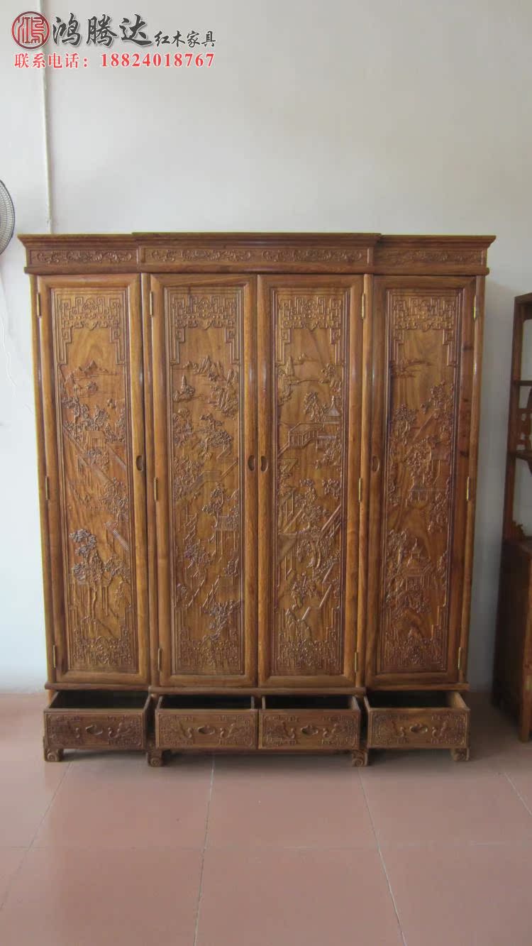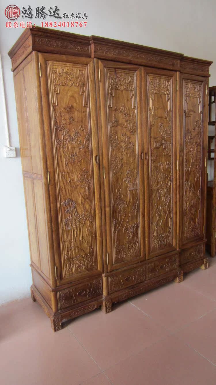 Mahogany furniture solid wood African huanghuali wood landscape top box cabinet mahogany Chinese storage large wardrobe vertical cabinet special offer
