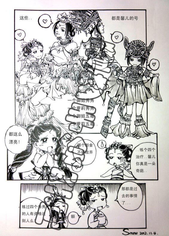 Customization Game comics Illustration Four-grid comics Black and white version