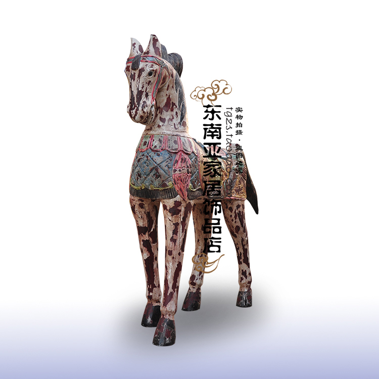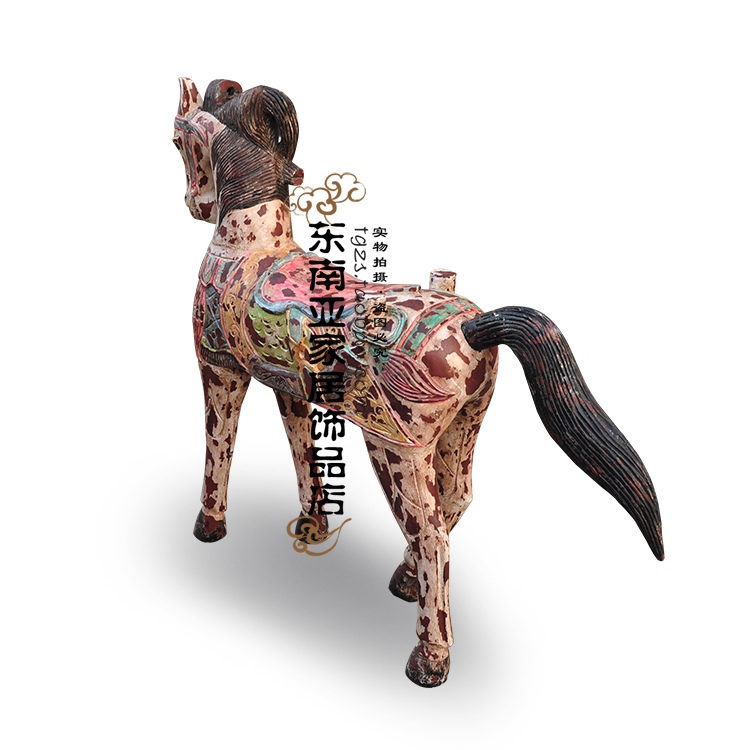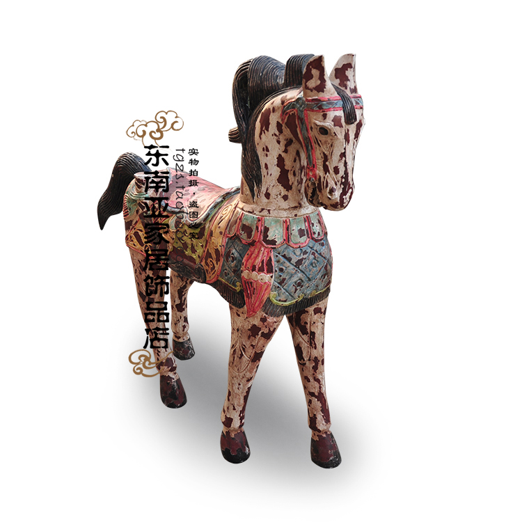 Thai home ornament pendulum decorated by hand engraving as old all-solid-wood Trojan horse pendulum piece Handicraft Special horse