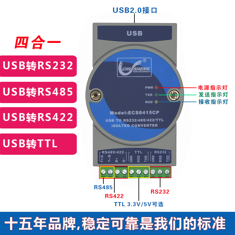 ECS8415CP industrial grade USB to RS232 485 422 TTL USB to serial port photoelectric isolation