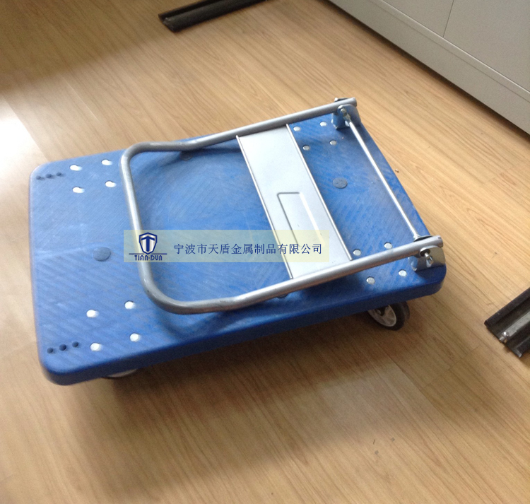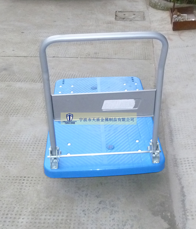 Foldable trolley plastic flat folding silent wheel trolley steel handrail blue single-layer trolley