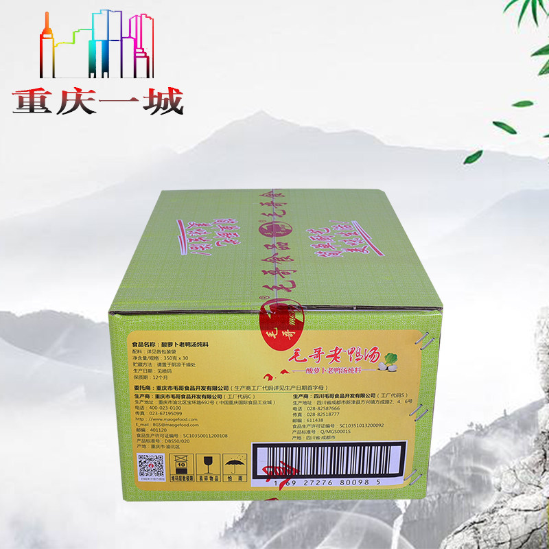 Chongqing Mao Ge duck soup full box 30 bags of packaging Mao Ge sour radish duck soup stew 350g*30 generations