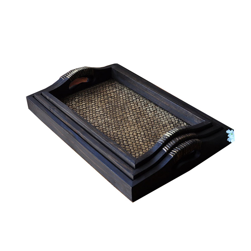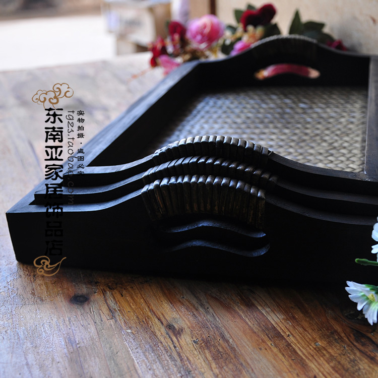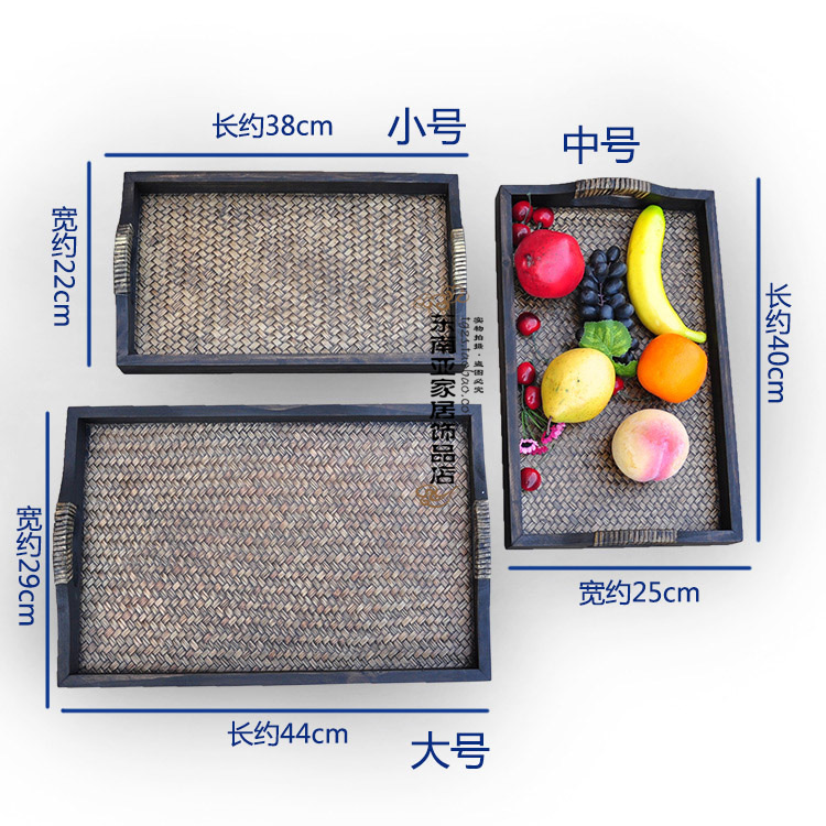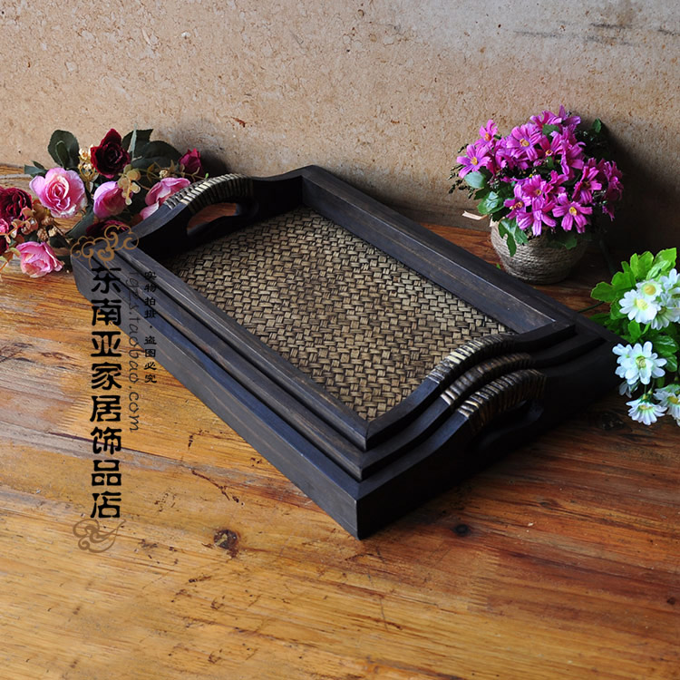 Thai-style bamboo weaving three-piece fruit plate tea tray tray coffee plate retro solid wood dinner plate rectangular hotel