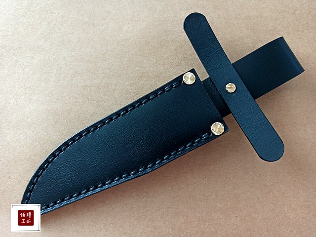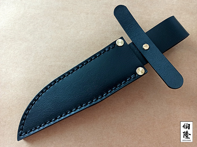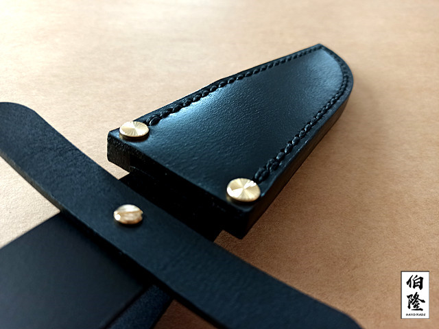 Ultra-thick fully hand-sewn black vegetable tanned leather top layer cowhide scabbard knife set custom