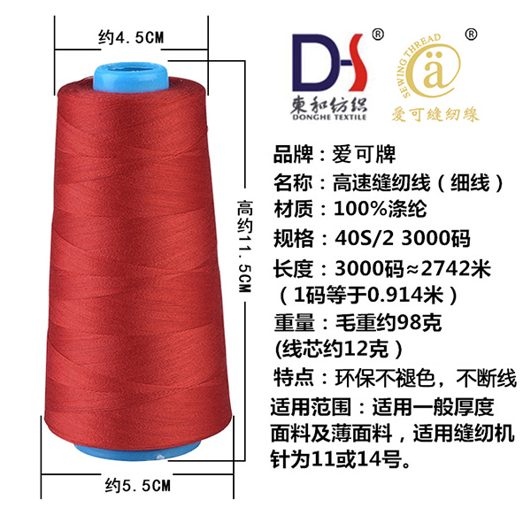 Silicon-containing quilting line flat car line 40S 2 2750 meters hand-stitched embroidery lock edge fine line High-speed polyester fiber sewing machine line