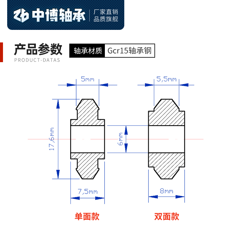 Single-sided diamond outer 17 5 inner 6 thick 7 5 diamond double-sided outer 17 5 inner 6 thick 8