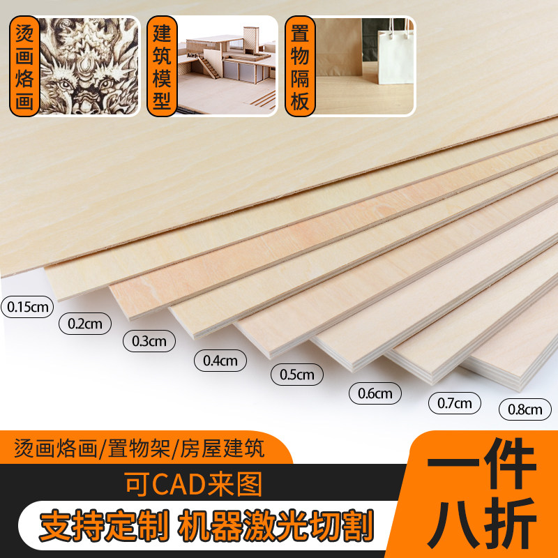 DIY handmade building model small plank pyrography thin wood material synthetic board sheet Lindwood laminate customization