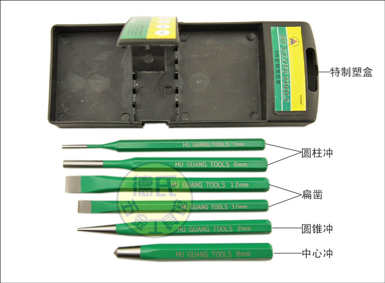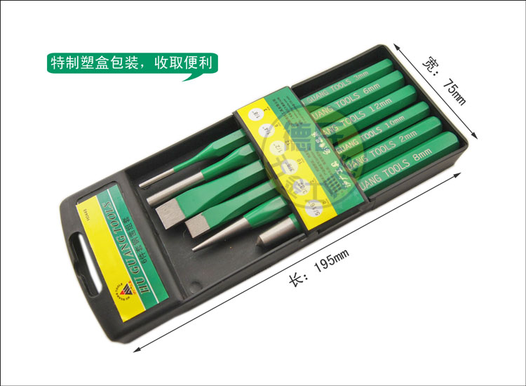 Shanghai wide tool 6 pieces of steel chisel set jacket small chisel suit flat chipper conical punching cylindrical punching centre punch