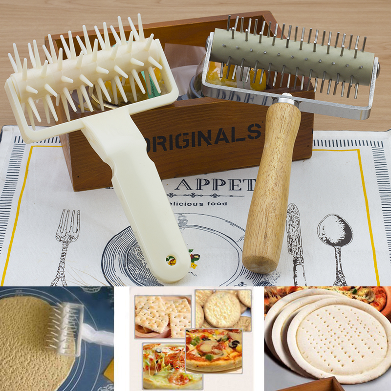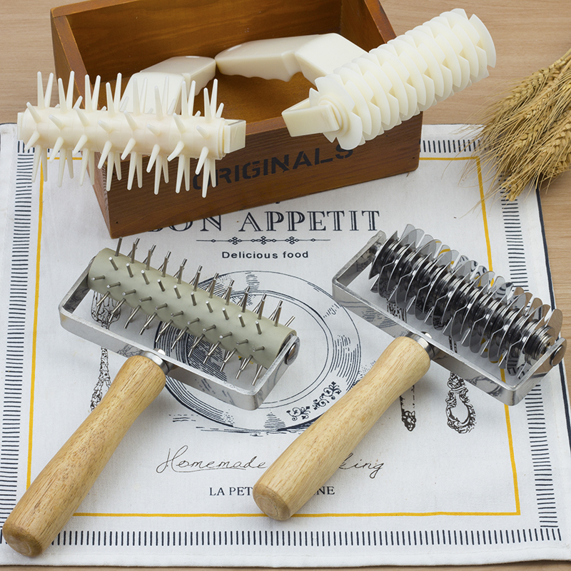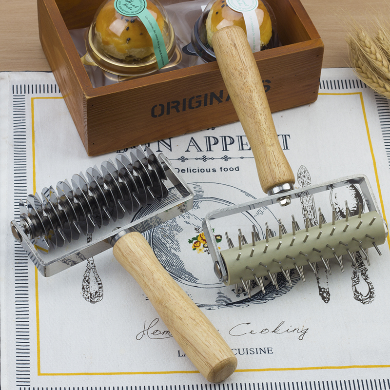Wood handle stainless steel needle roller Pizza bottom punch Pull net knife Roller knife Cutting knife Multi-round meringue knife