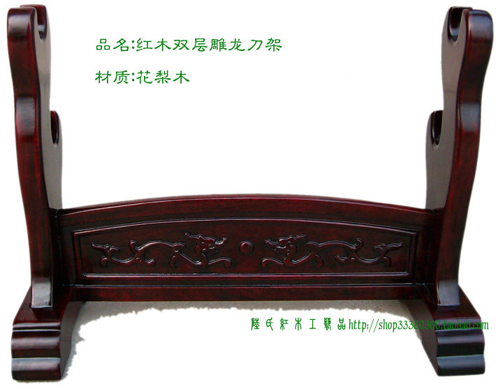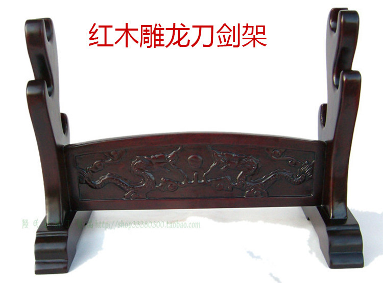 High-end Red Wood Sword Rack Integrated Tool Holder Sword Trust Solid Wood Engraving China Vintage Dragon Tattoo Sword Base Unremovable