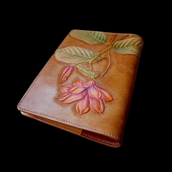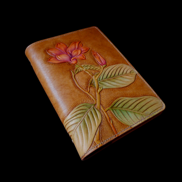 Handmade Genuine Leather Gift Custom Bull Leather Sculpture Floral Painted Lady Jade Orchid A5 Six Holes Loose-leaf Notebook