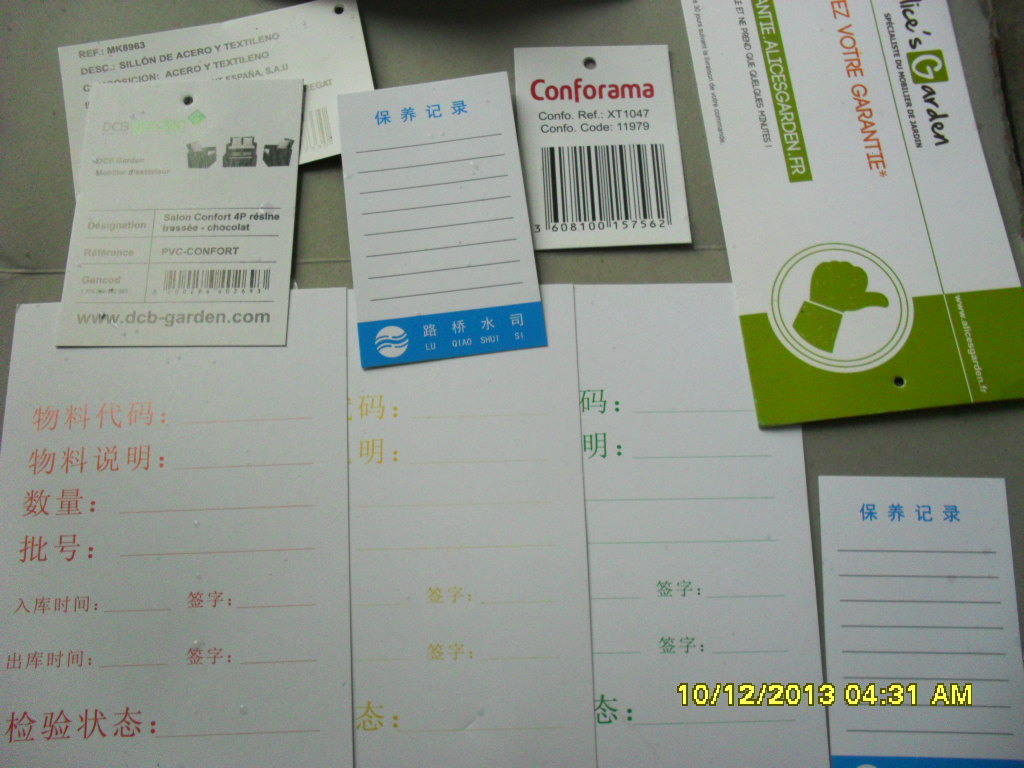 Price tag Warehouse tag Bag Elevator certificate Circulation card Cargo label tag custom