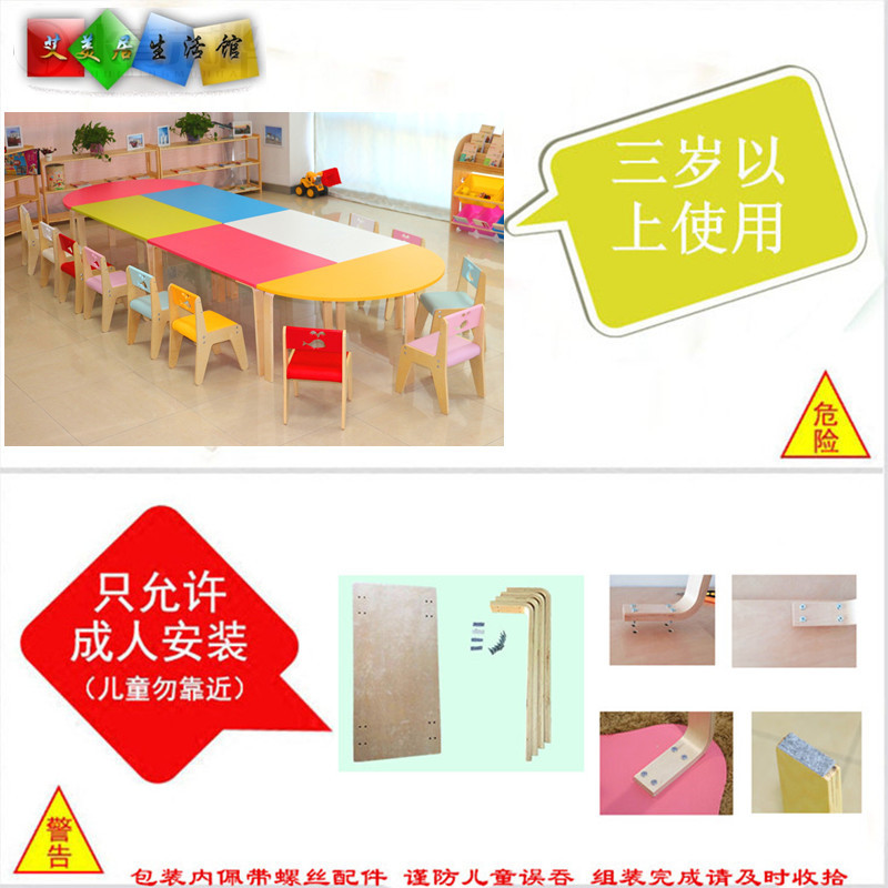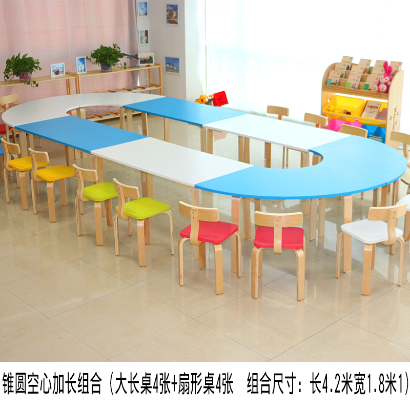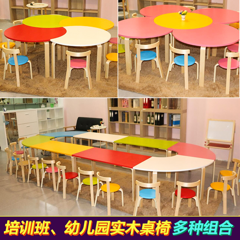 Children's tables and chairs Solid wooden kindergarten tables and chairs combination splicing large desks early education training courses Children's early education tables and chairs