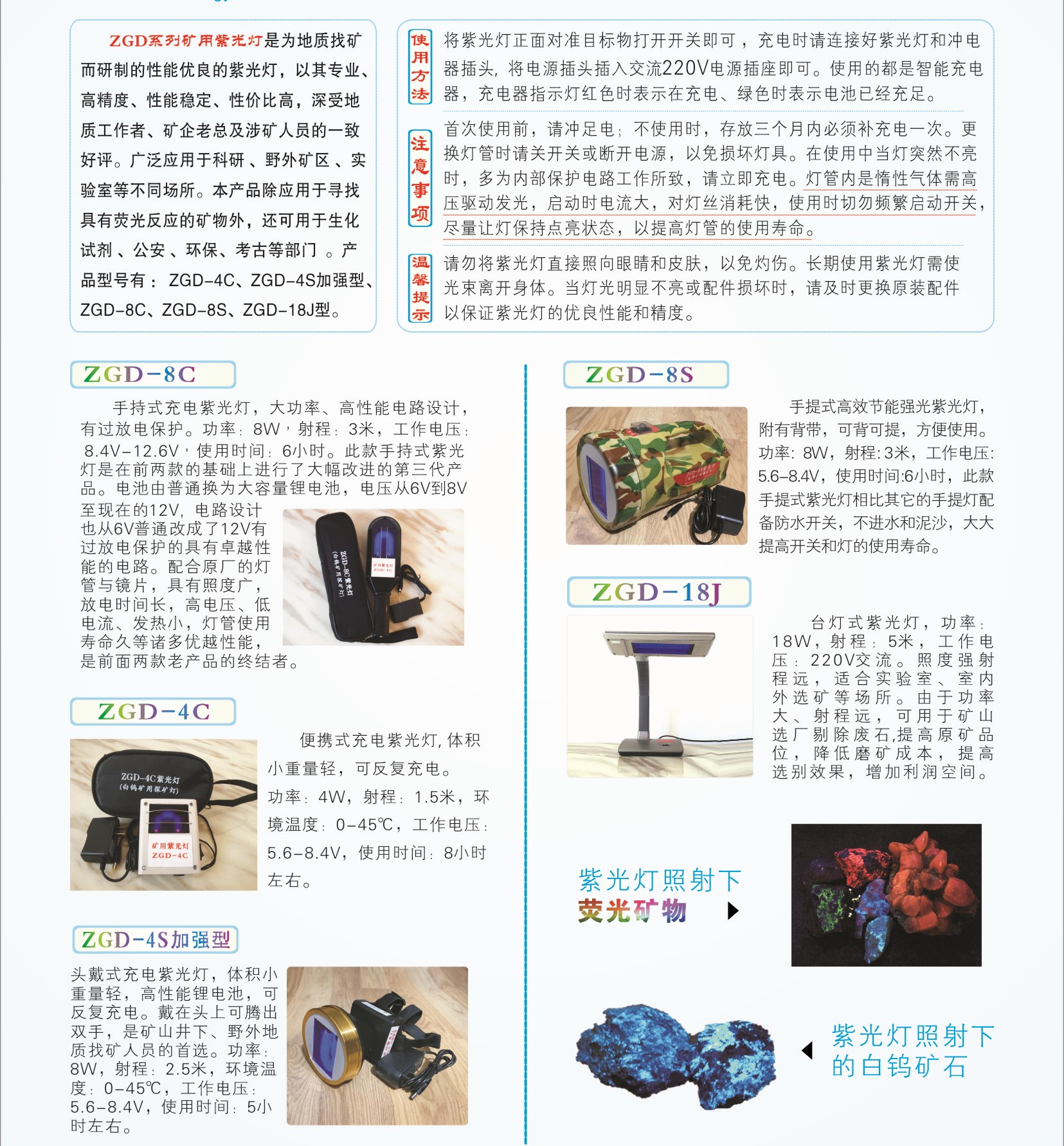 Wai tungsten violet light, white tungsten fluorescent lamp, looking for tungsten, prospecting, ultraviolet lamp for mining, purple lamp ZGD-8C