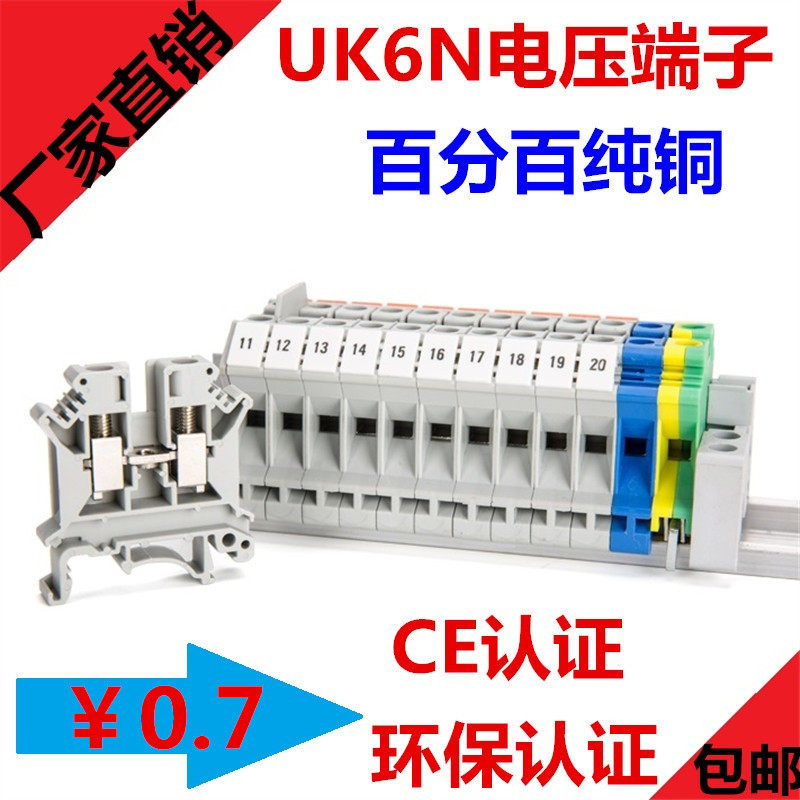 Manufacturer direct sales rail UK6N voltage terminal block UK - 6N pure copper not slip 6 square terminal gray