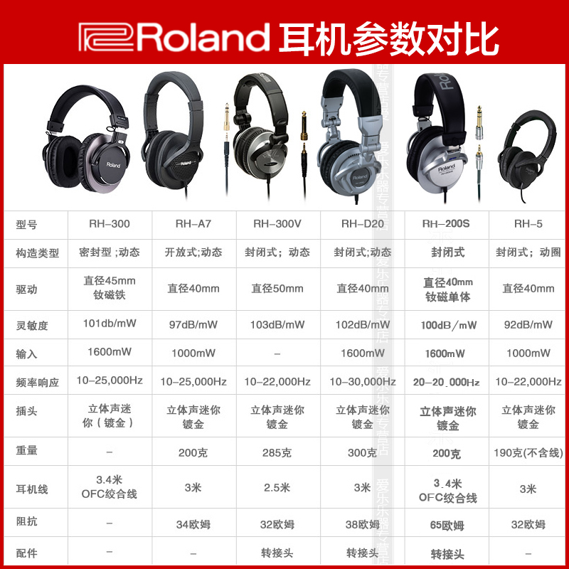 Roland RH-5 A7 200 300 300V stereo Professional monitor headset