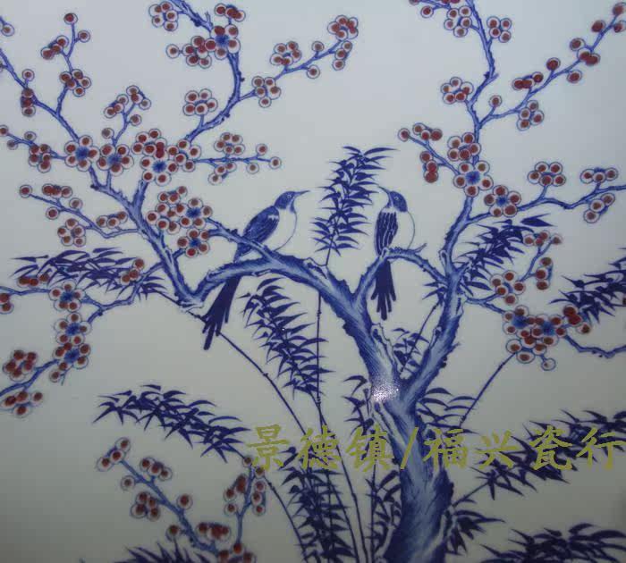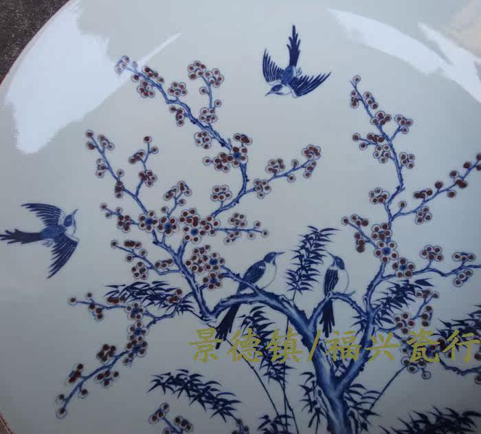 Ceramics from Jingdezhen Cultural Revolution Factory Jianguo Factory produced blue and white glazed red plum swallows Porcelain plate Firewood kiln