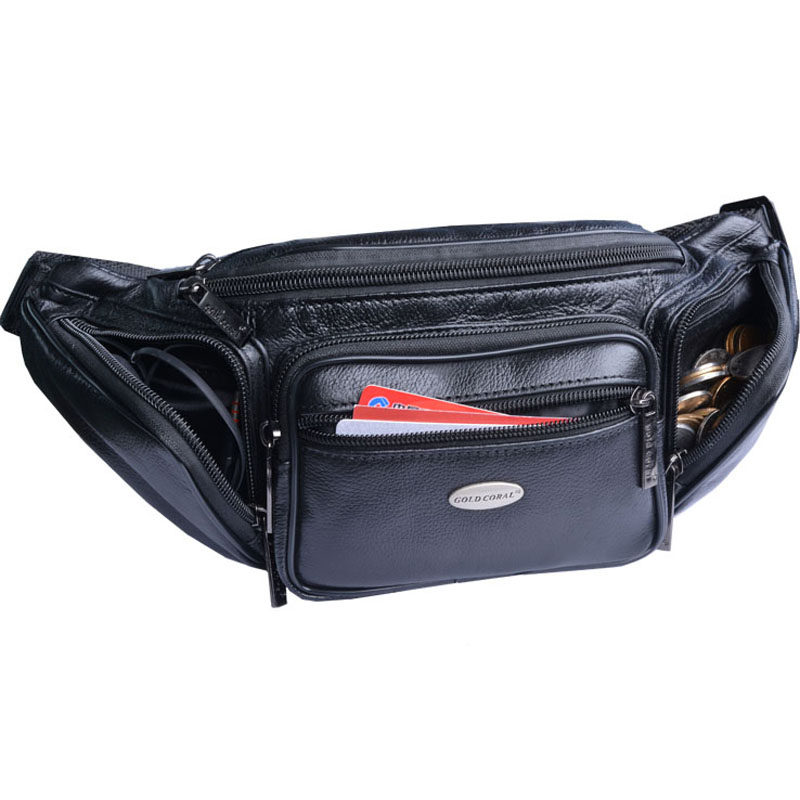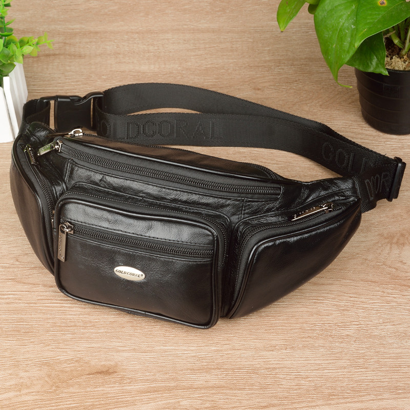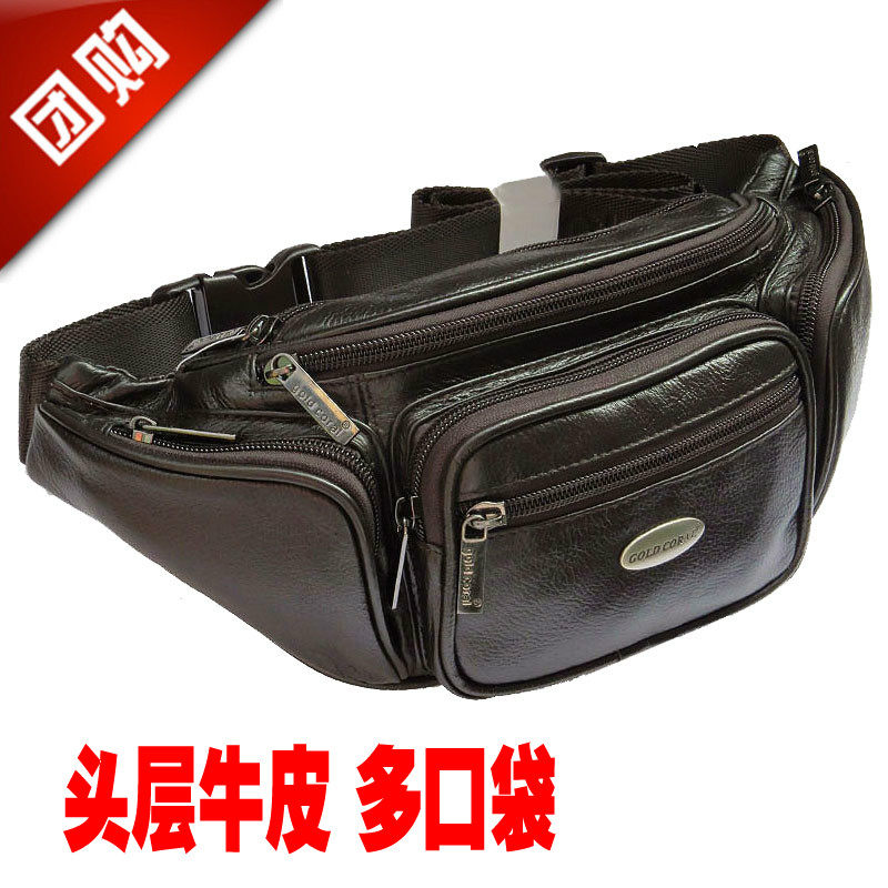 Men's leather pockets multifunction headlayer Bull Leather Chest Bag Closets waist satchel collection Silver multiple bags Small pockets Soft Pig-Taobao