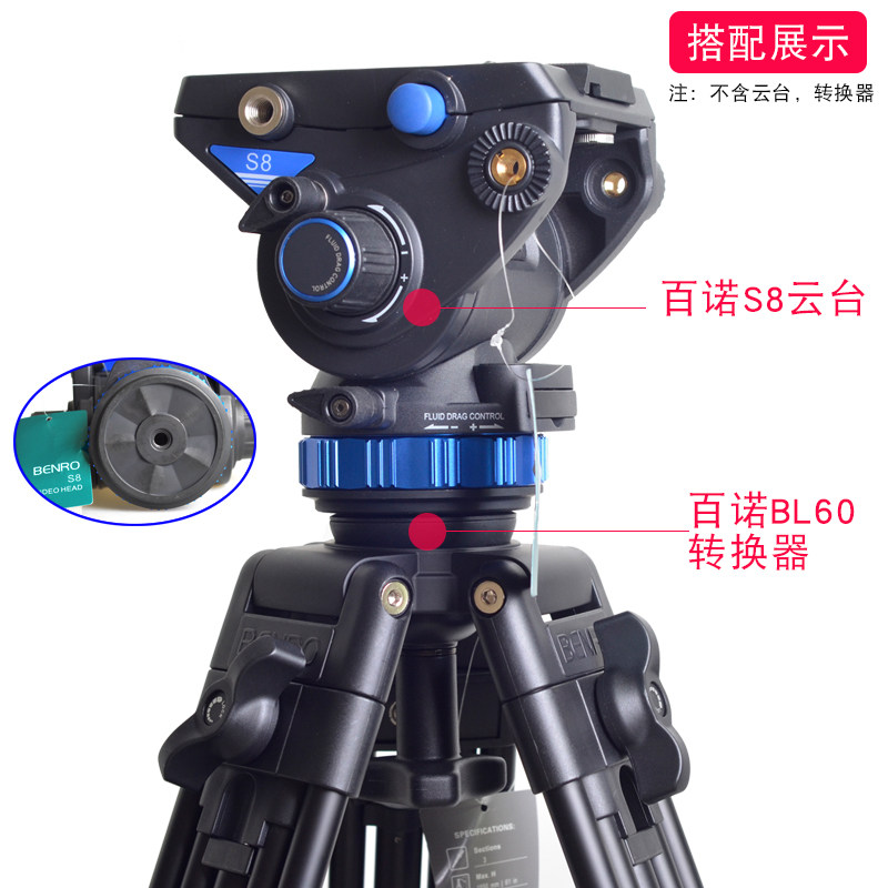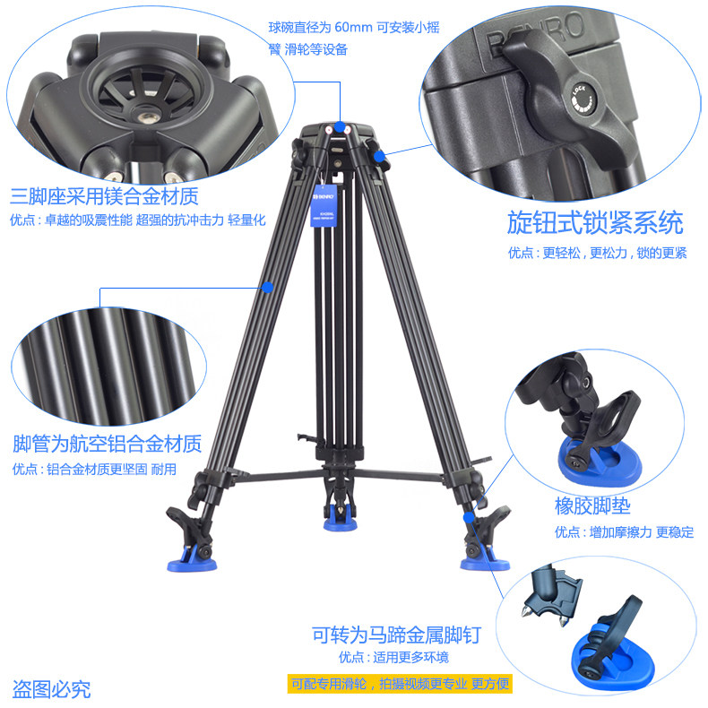 Benro KH25N upgrade KH26NL tripod professional monocular camera camera tripod can be equipped with 60 65mm bowl mouth hydraulic pan-tilt photography double diameter aluminum alloy bracket