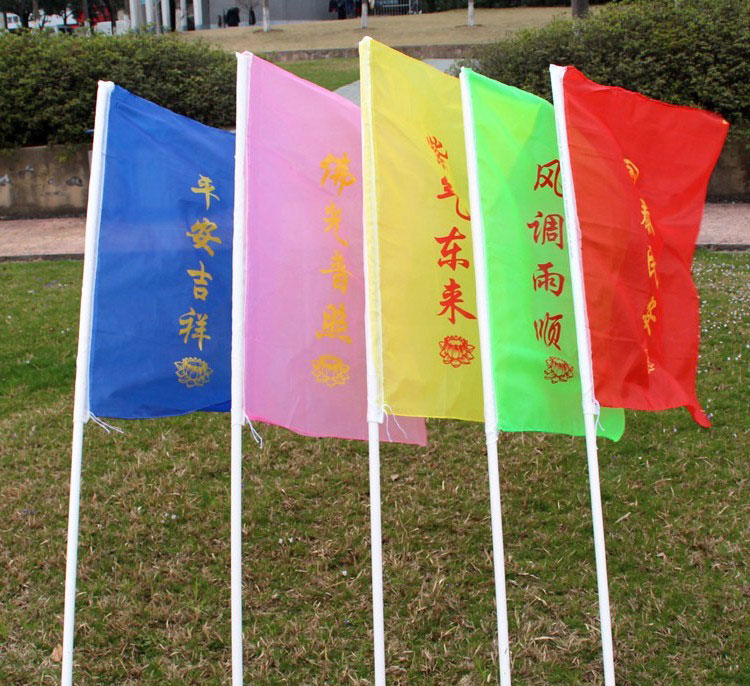Fuhui Buddha with meditation supplies Buddha hall hall law meeting triangular flag colorful flag teaching flag five-color flag five-color flag flag