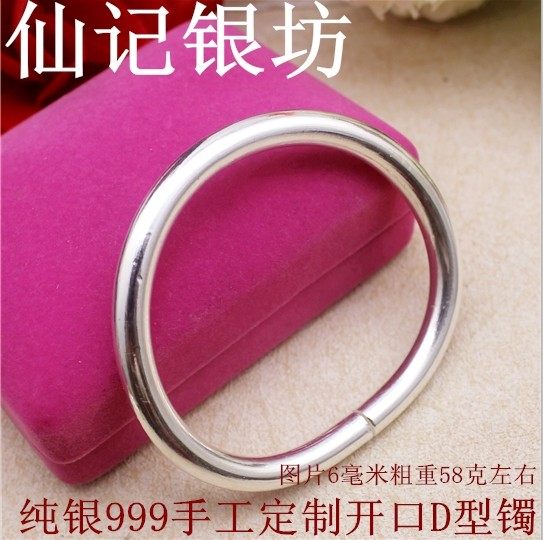 999 foot silver D shaped round strip garden opening silver bracelet pure silver bracelet pure hand custom solid