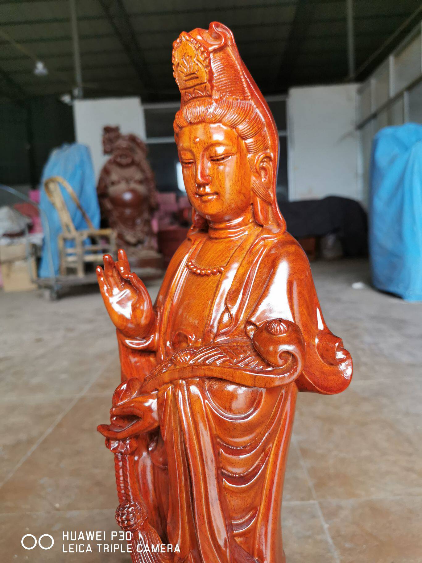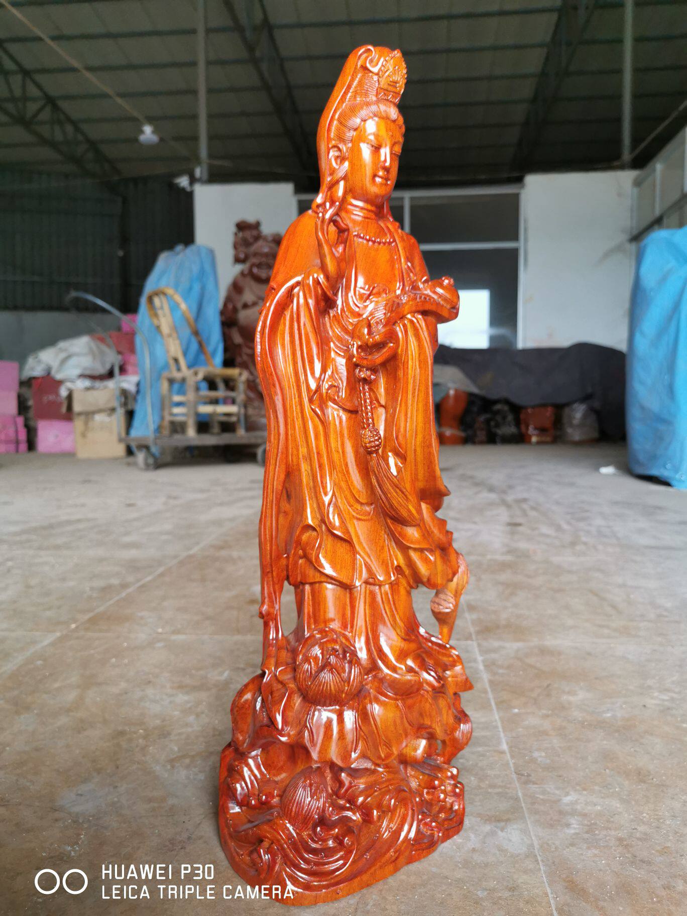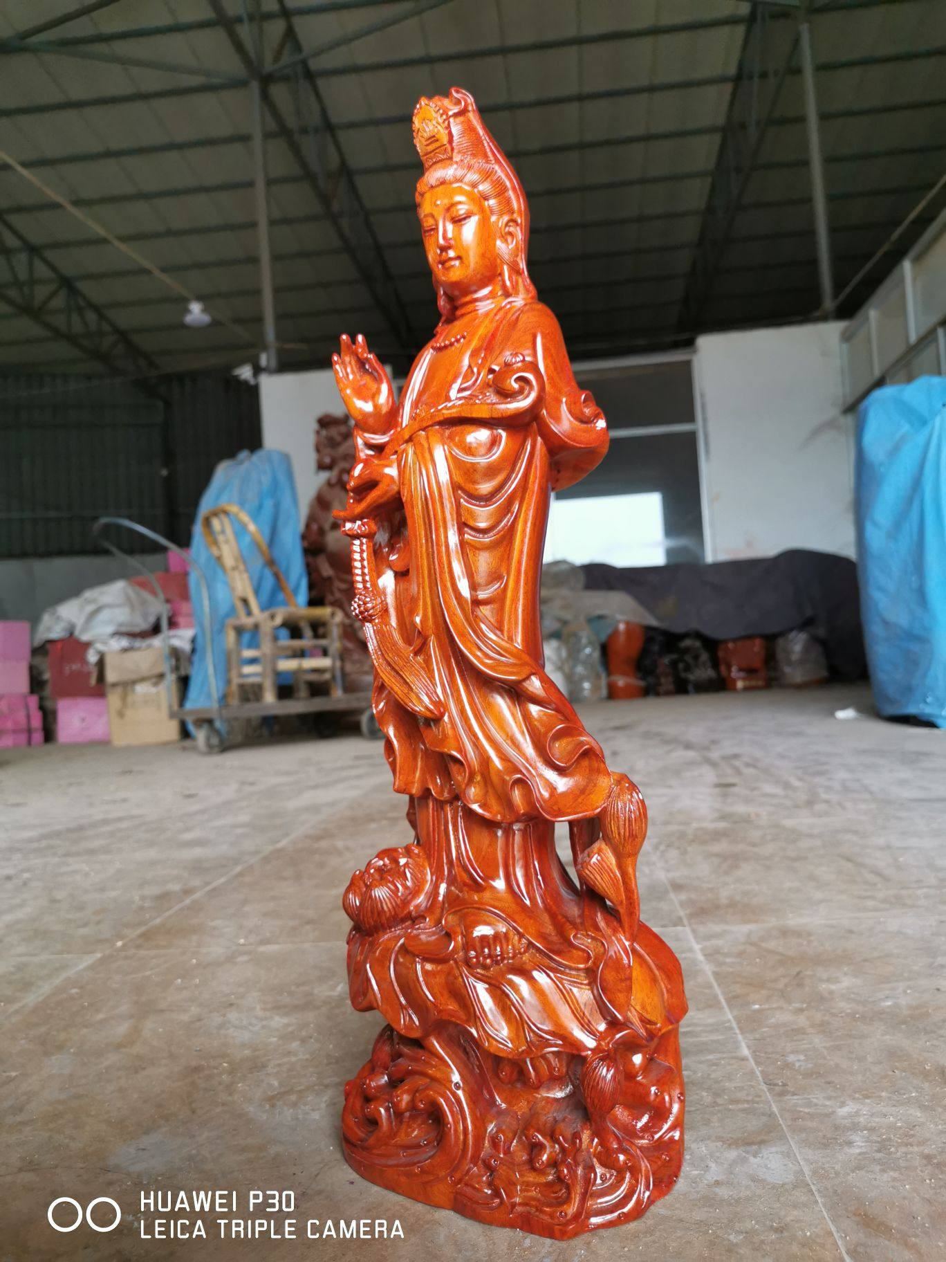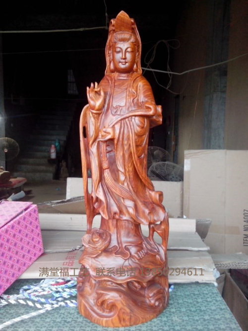 Yellow flower pear wood carving South China Sea Ruyi Guanyin's BodhisattBodhisattva Pau Ping An Red Wood Town Residence Buddha's home Buddha Hall