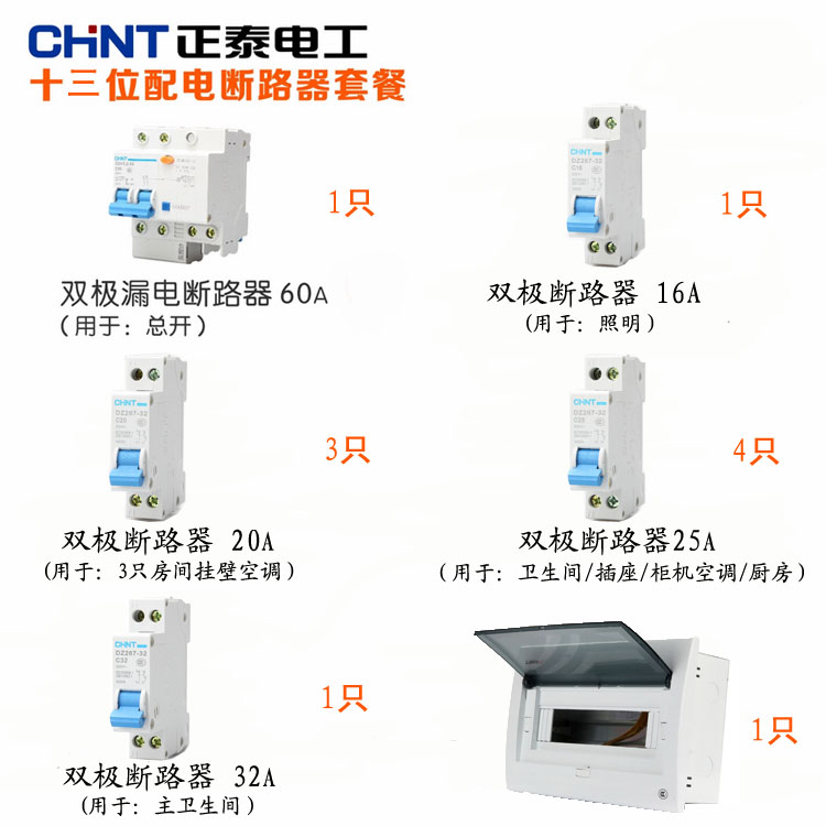 Home decoration luxury distribution box strong electric box PZ30 three-bedroom double-wire protection type] Chint strong electric set