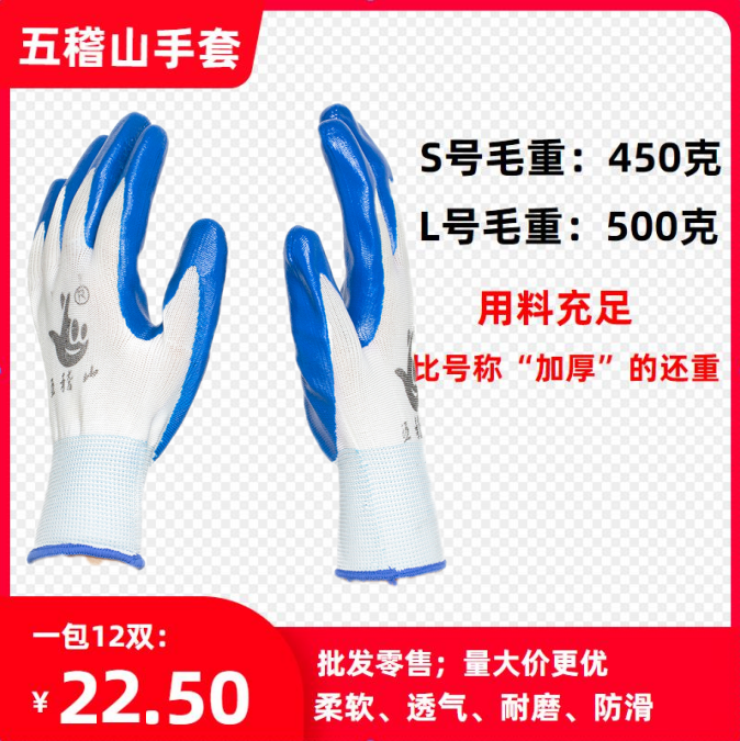 Hanging coating impregnated anti-slip protection Ding Qing labor protection gloves Five Ji Zhi Shan size male and female half skin N518