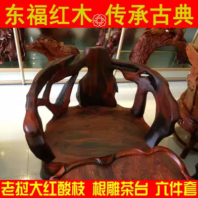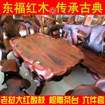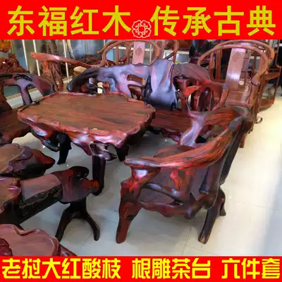 Laos big red acid branch wood root carving coffee table Tea table carving 6-piece modern Chinese tea table
