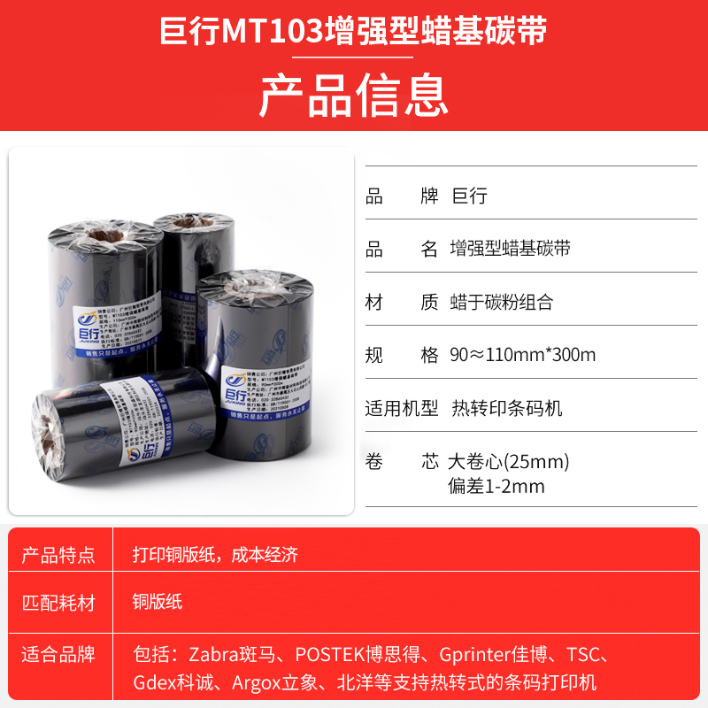 (delivery day) MT103 large core reinforced wax-based carbon band printer full wax carbon band printer with 110mm*300m 100m 90mTSC printer label