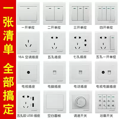 International electrician 86 wall switch socket panel package White household two-digit midway two open multi-control switch