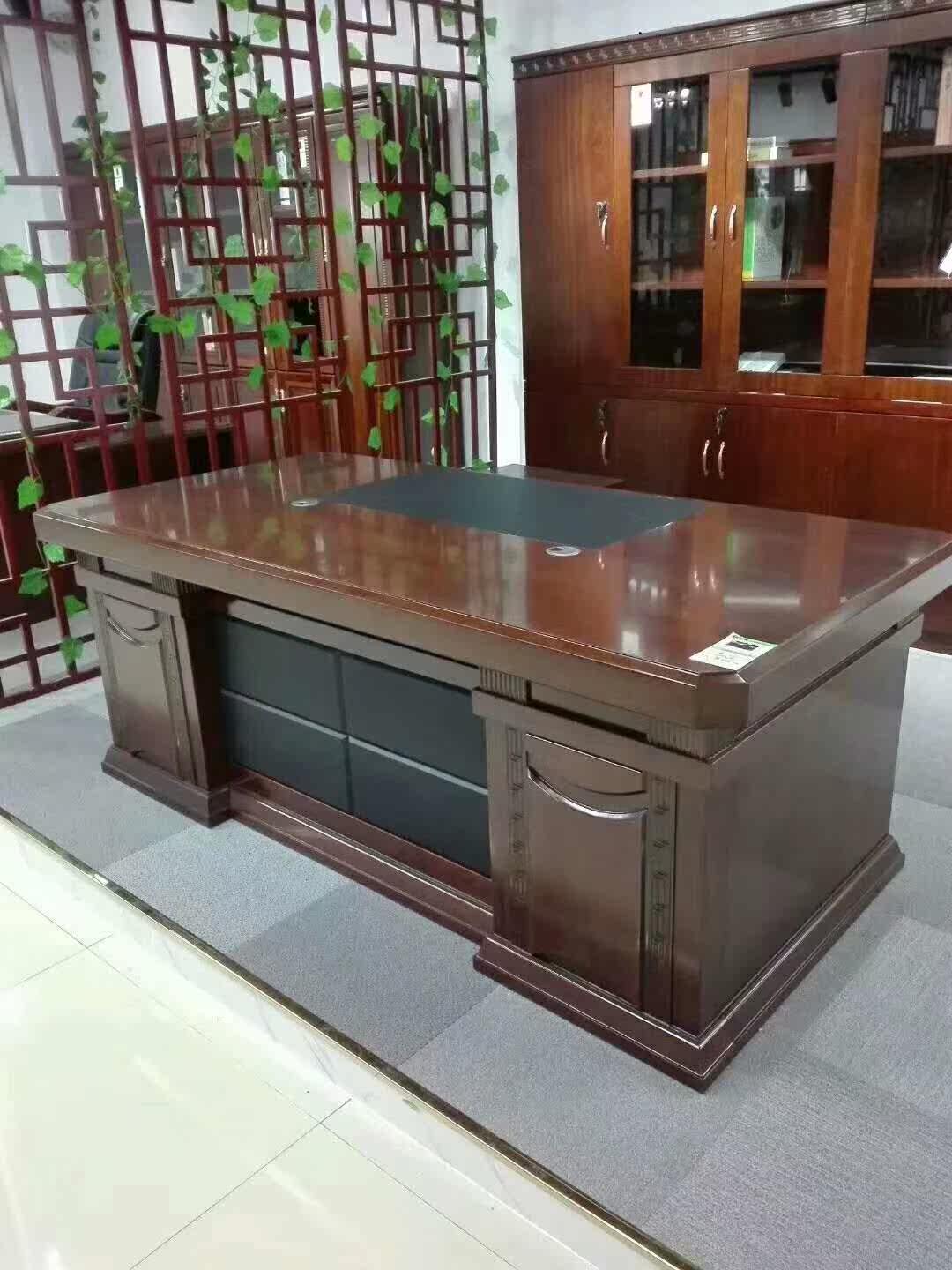 New Large Class Bench Paint Sticker Solid Wood Leather Boss Table President Table President Table And Chairs Combination Brief Modern Office Furniture